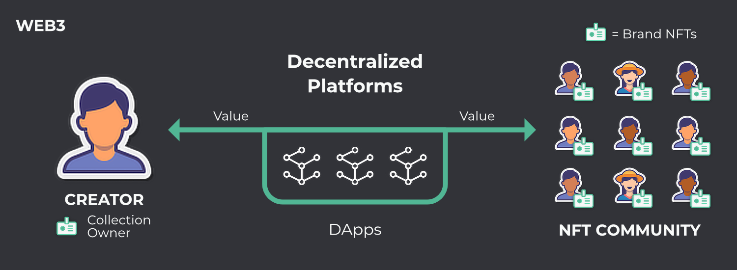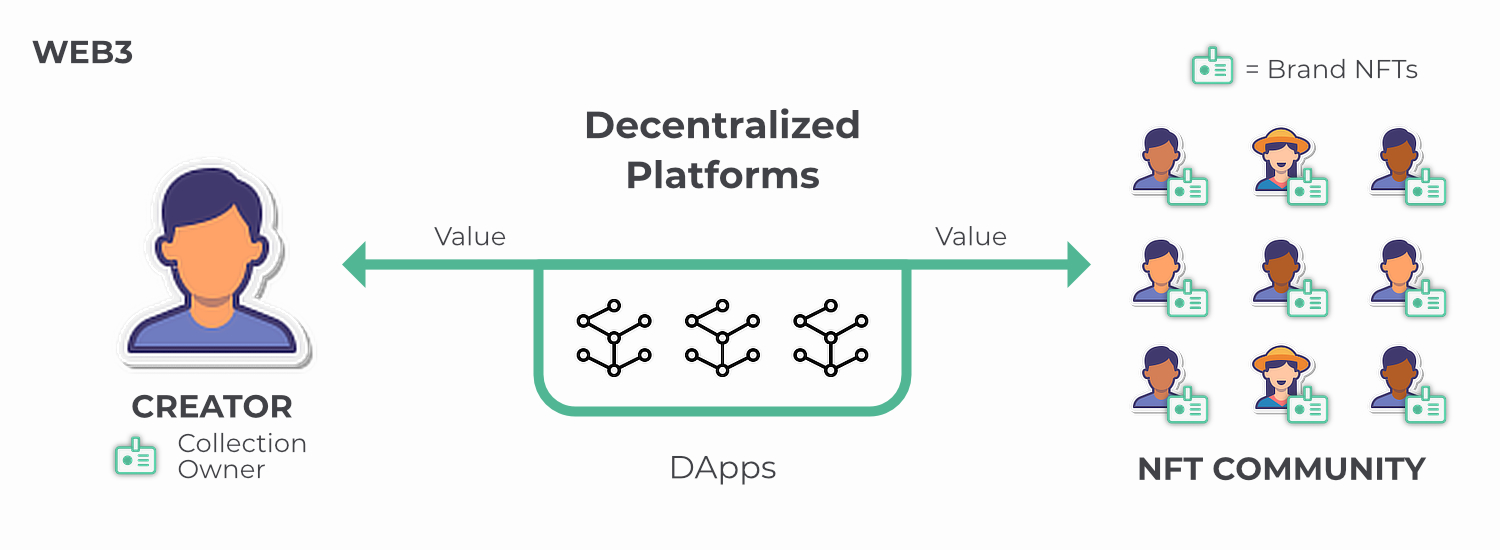 Gracias a los NFTs de marca, seremos dueños de la relación con nuestros seguidores, quienes nos seguirán en todas las plataformas de la Web3 siempre que posean nuestros NFTs.