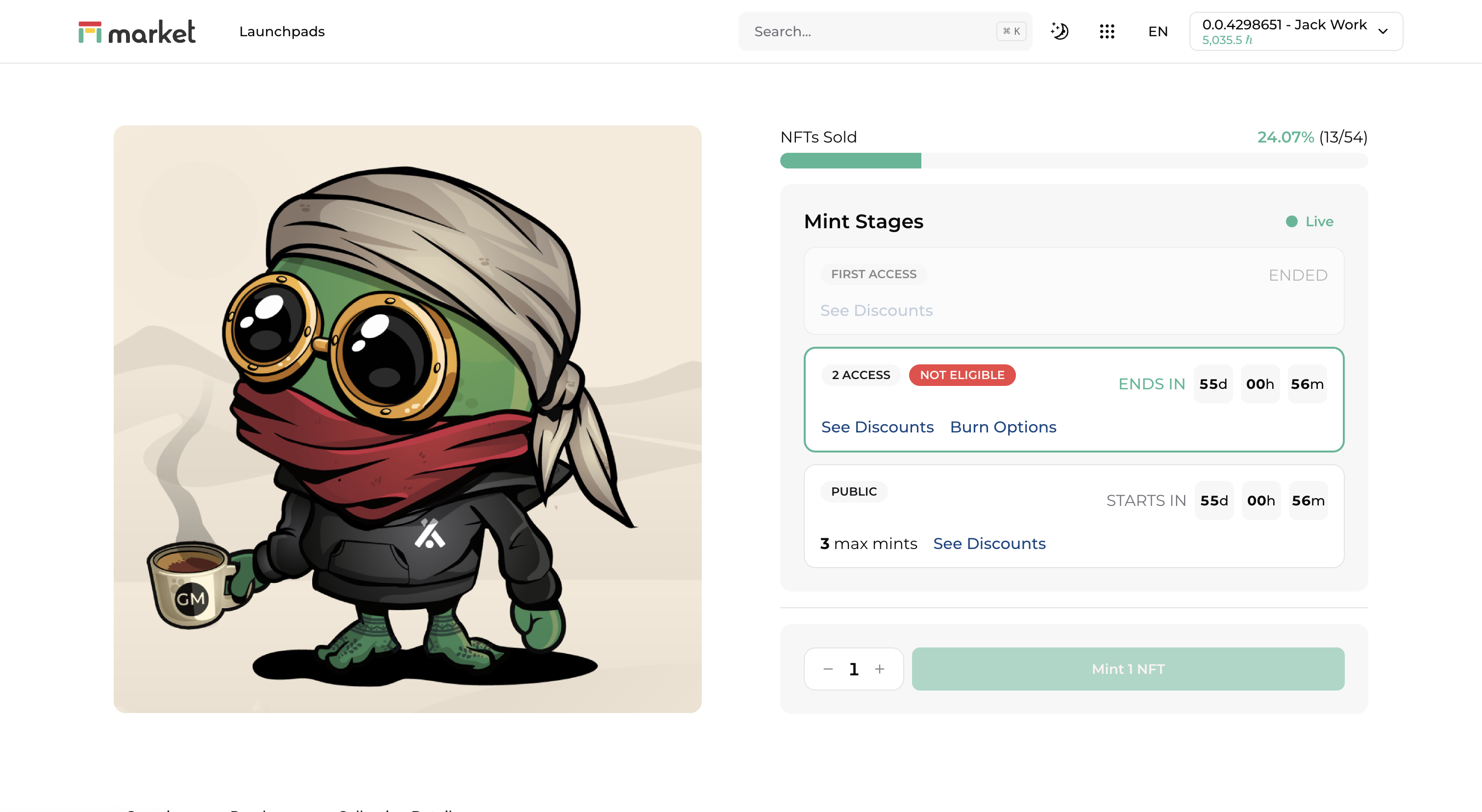 Las etapas del Laucnhpad te proporcionan información sobre la fase actual del mint y te ayudan a determinar los accesos y descuentos a los que tienes derecho en cada etapa.