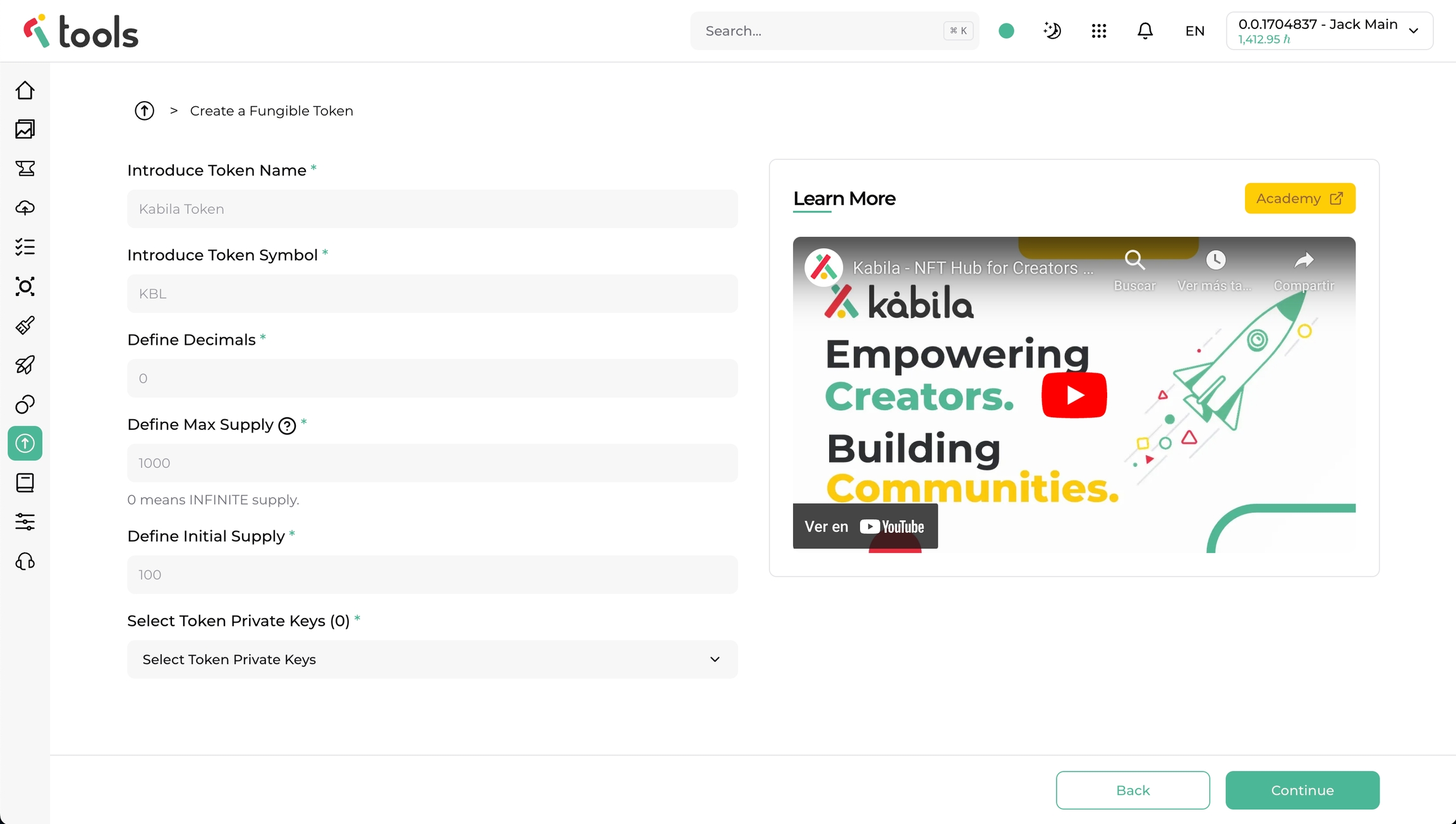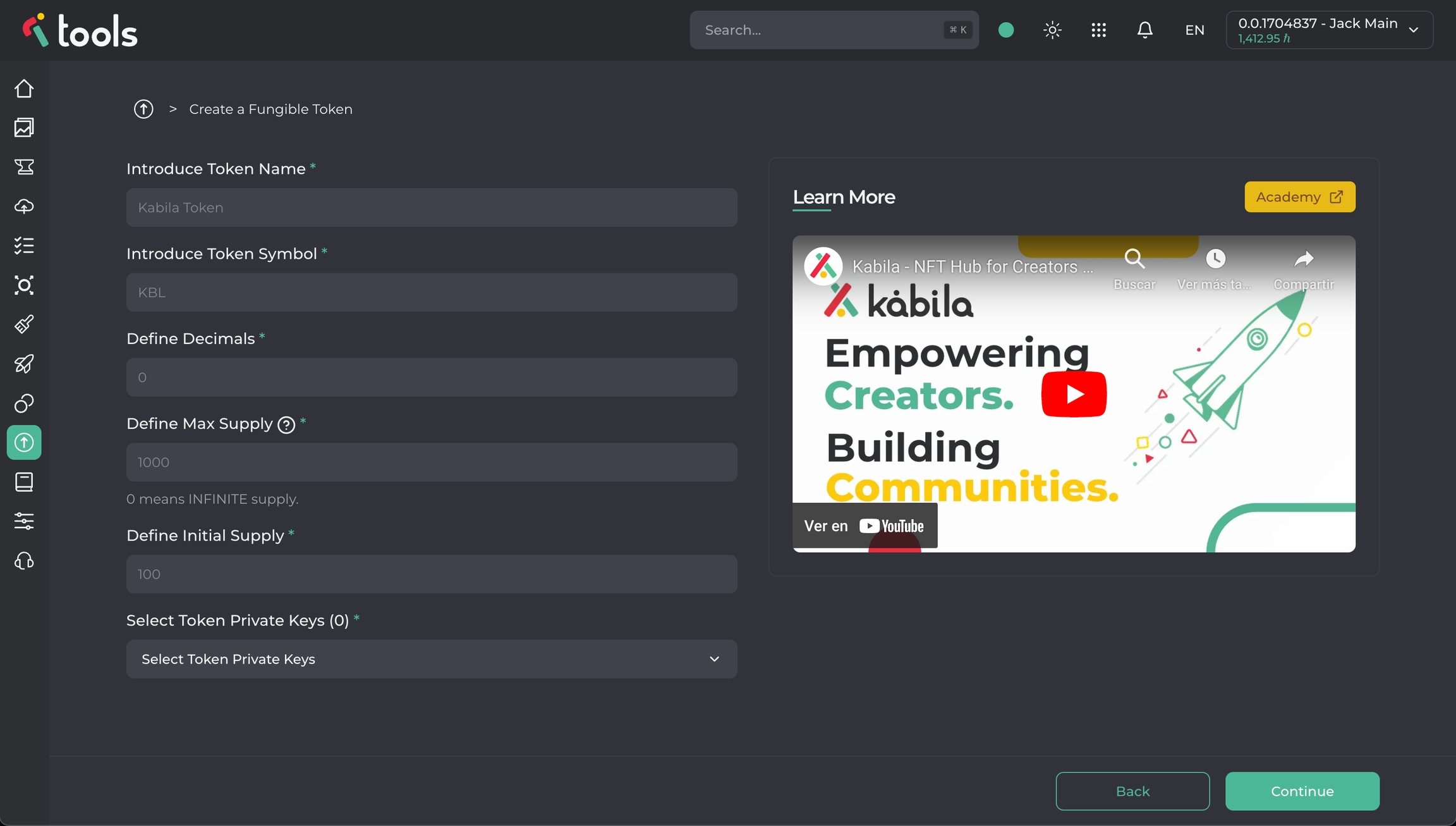 Si haces clic en "Crear un Token Fungible", deberás completar los siguientes detalles: