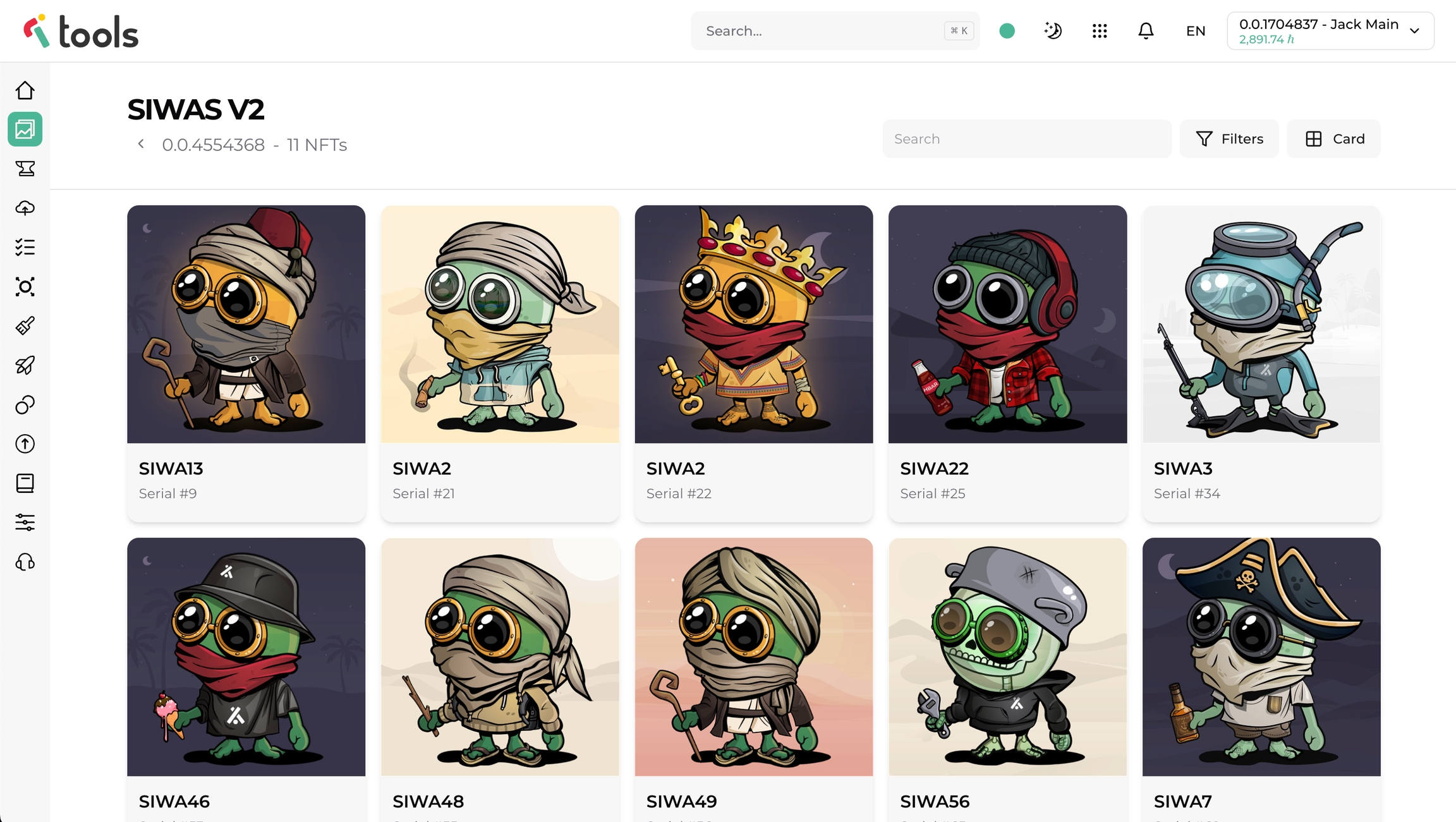 Una vez que hagas clic en una Colección, podrás ver todos los NFTs minteados dentro de esa Colección.