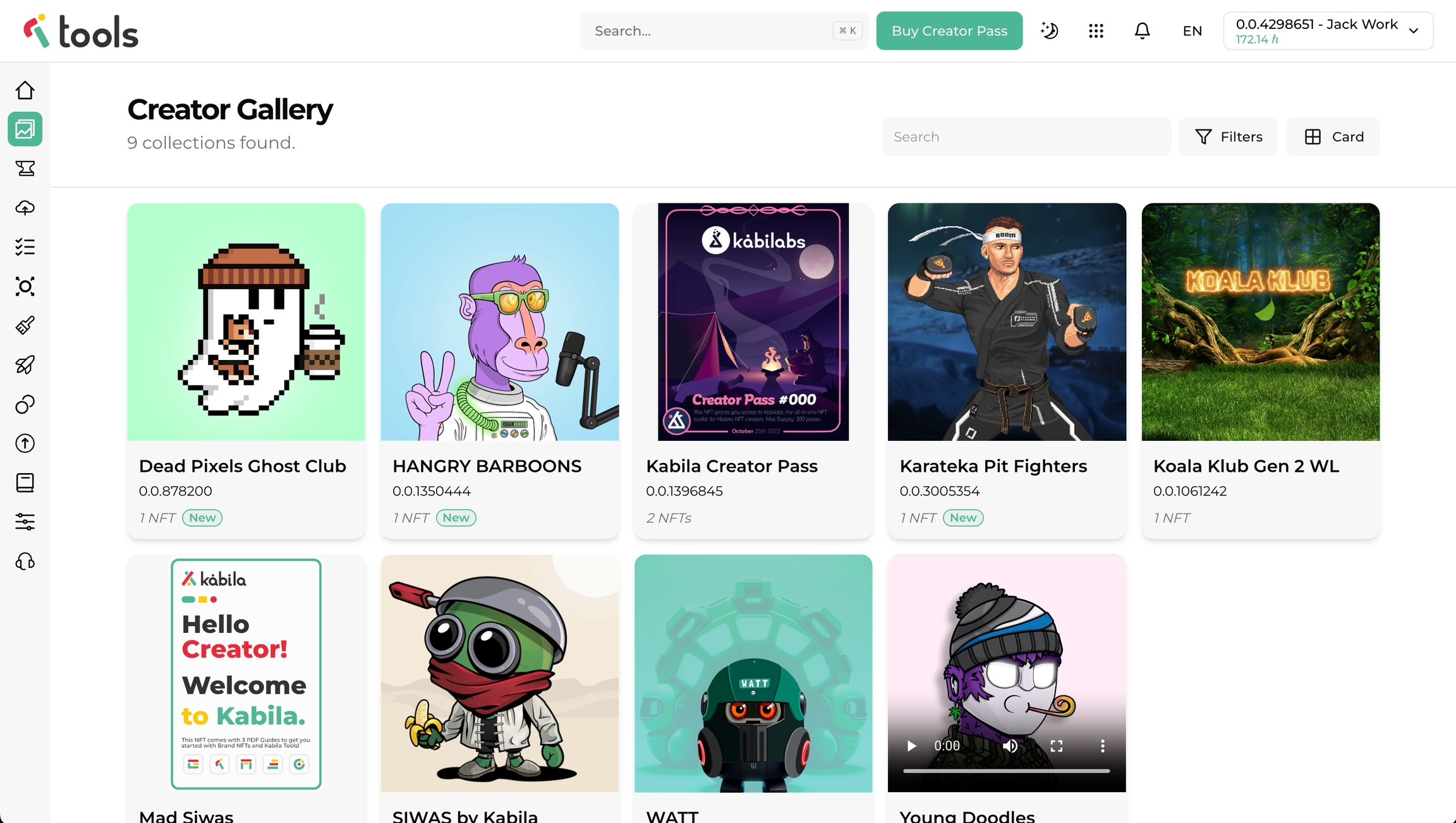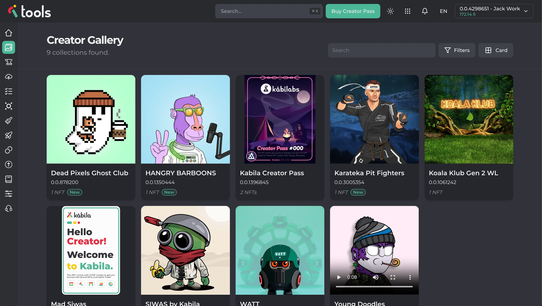 La Galería de Creadores te permite ver tus Creaciones de NFT y los CIDs de los Metadatos.