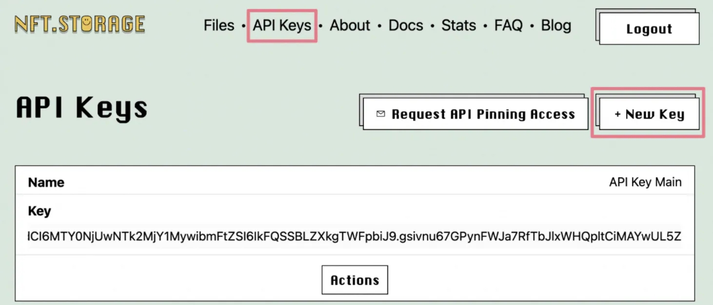 Para poder usar NFT.Storage, deberás crear una cuenta gratuita y obtener tu API Key. Esa clave te permitirá cargar datos (imágenes, videos, PDFs, Metadatos de NFT, etc...) en IPFS.