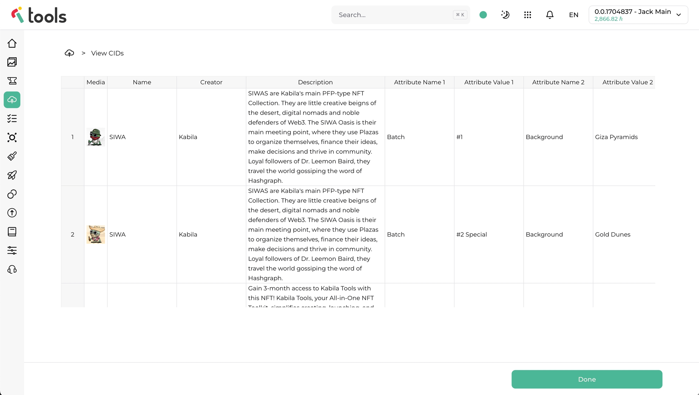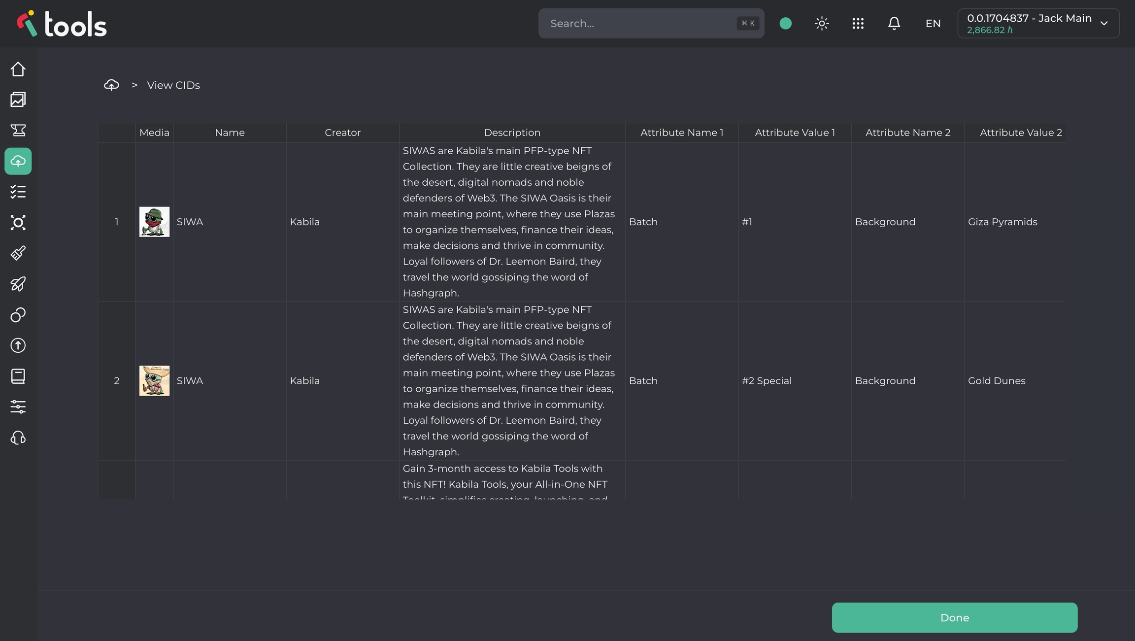 Visualiza los CIDs de los NFTs que has subido a IPFS