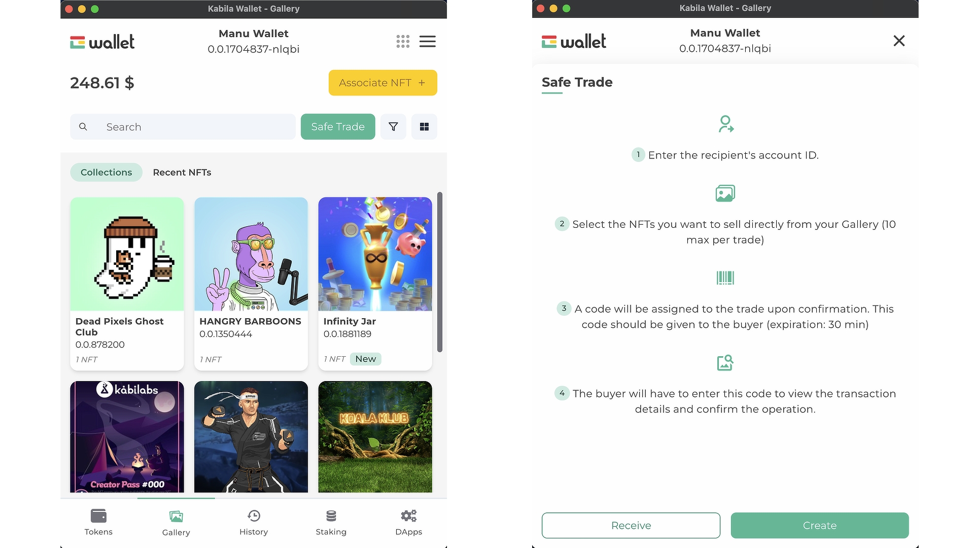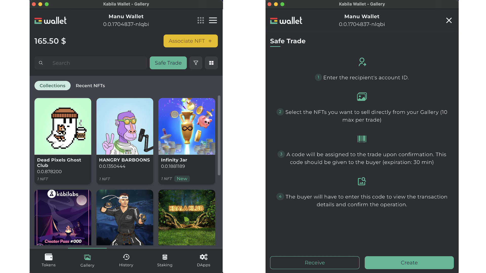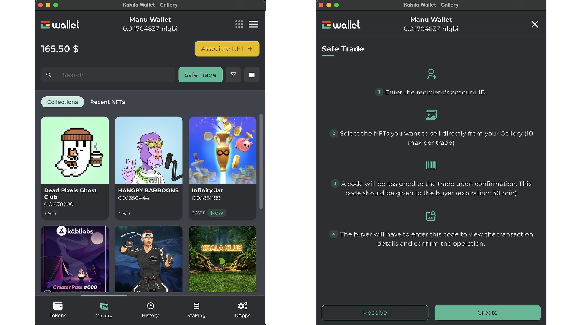 La herramienta de Comercio Seguro de NFT permite a los usuarios comprar y vender NFTs P2P de forma segura.