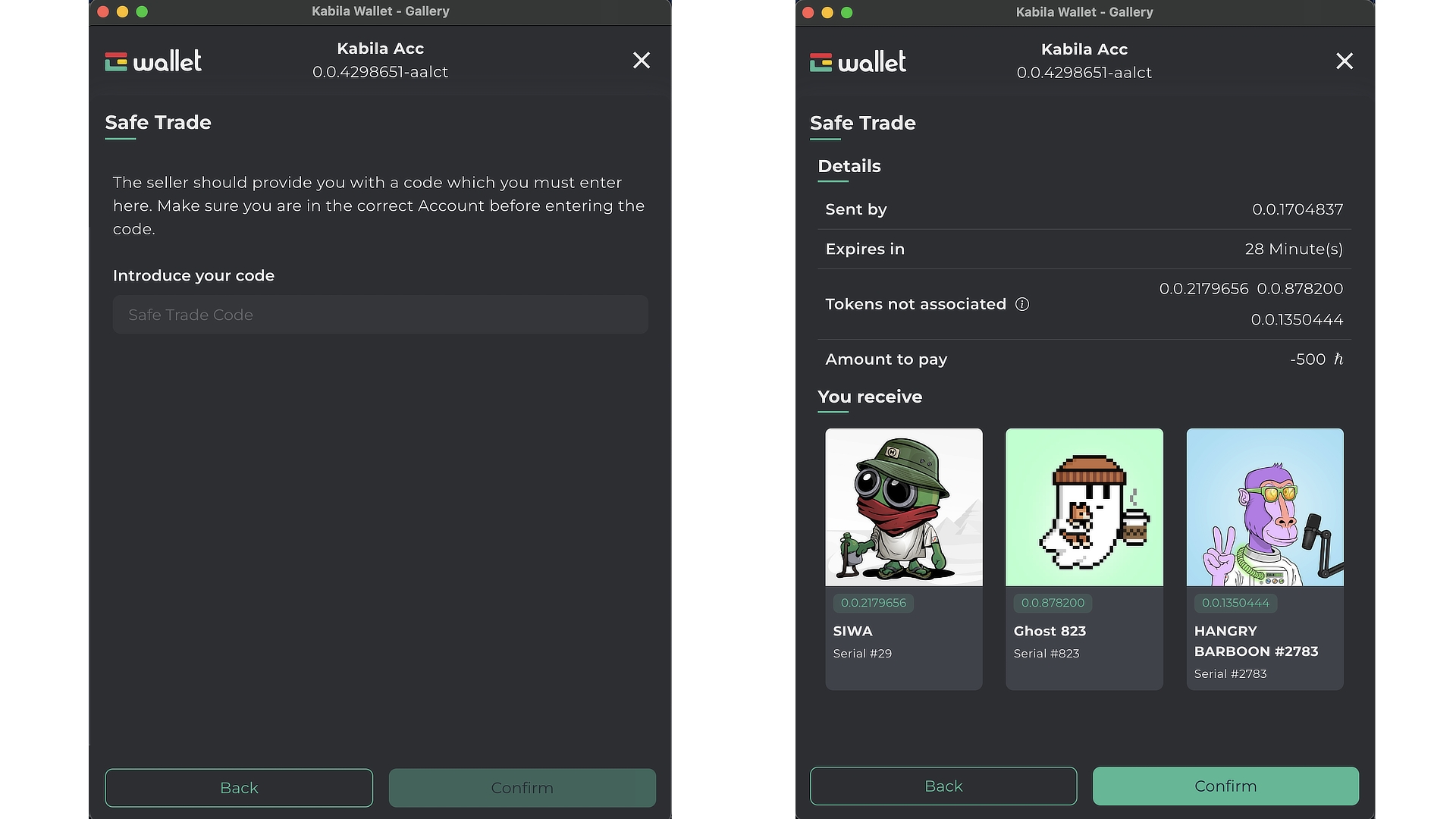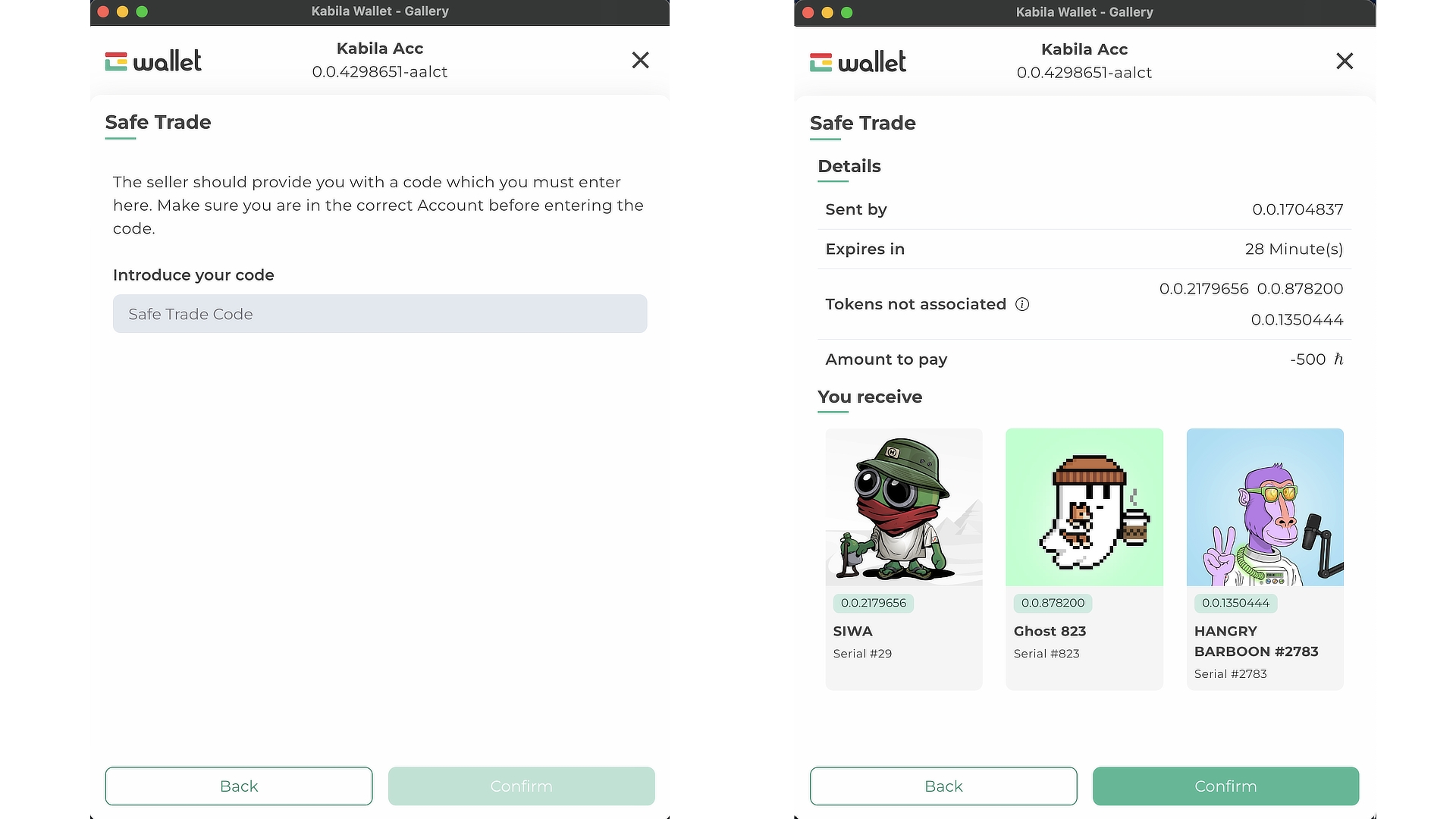 Imagina que has conocido a alguien de otra comunidad que propone un intercambio de NFT, donde se necesita confianza para la transacción. Comercio Seguro elimina los riesgos.