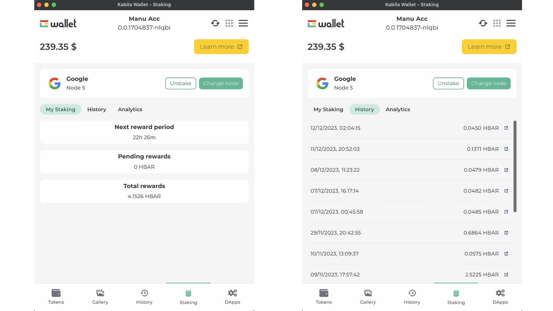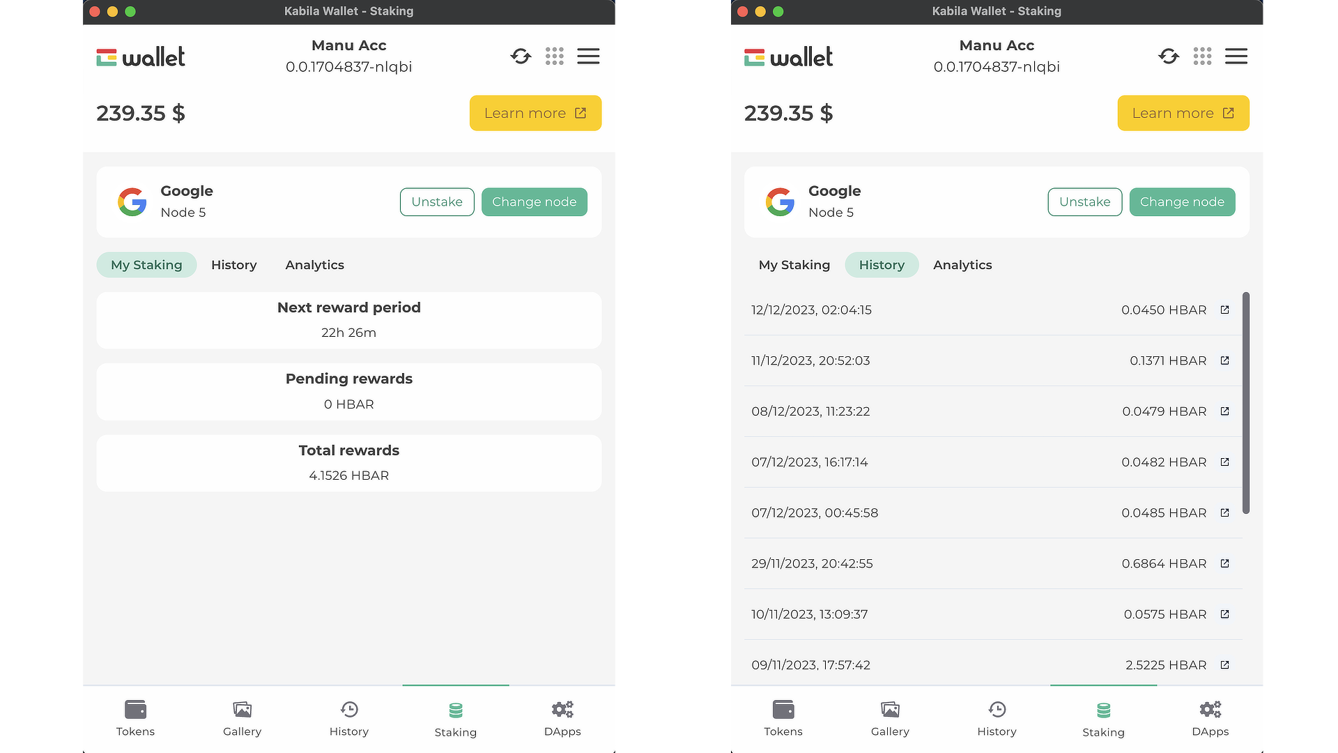 Recompensas pendientes. Muestra la cantidad de $HBAR esperando ser reclamado.
