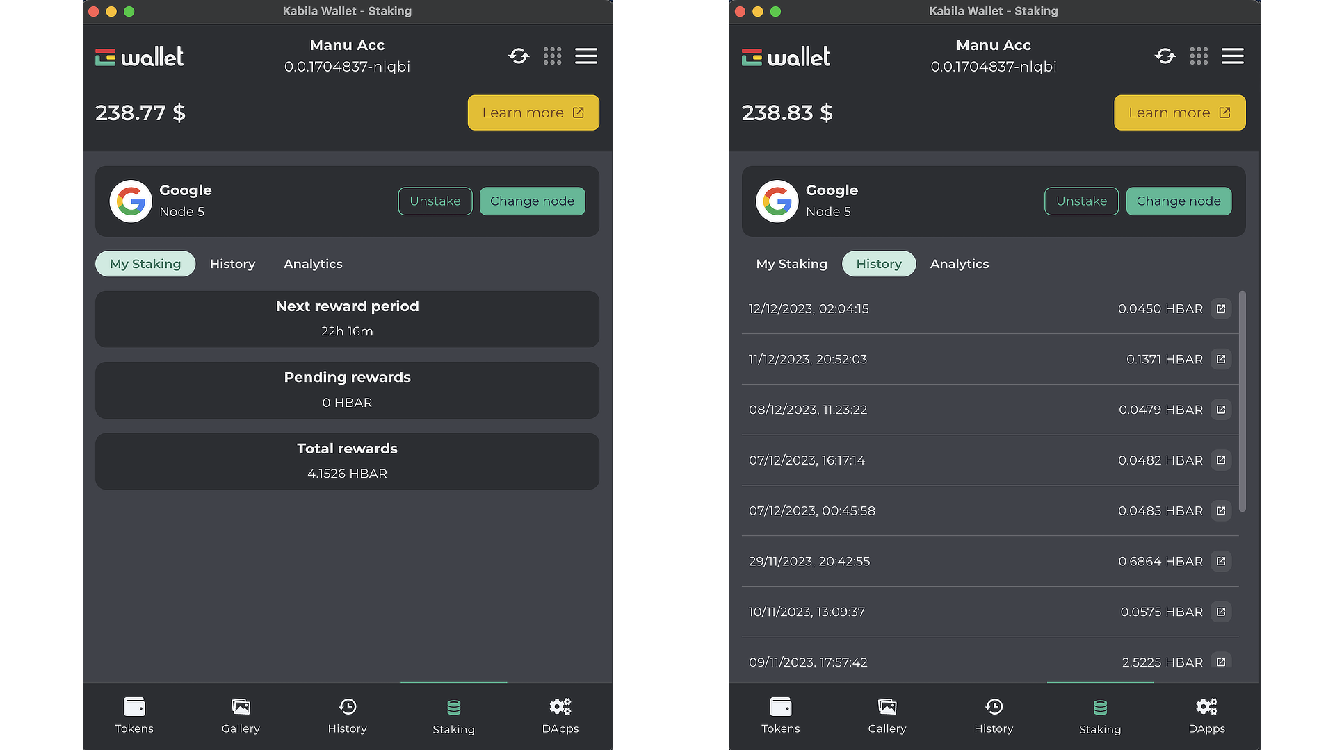 Cambiar tu nodo: Cambiar de nodo provocará el envío de las recompensas a tu cuenta.