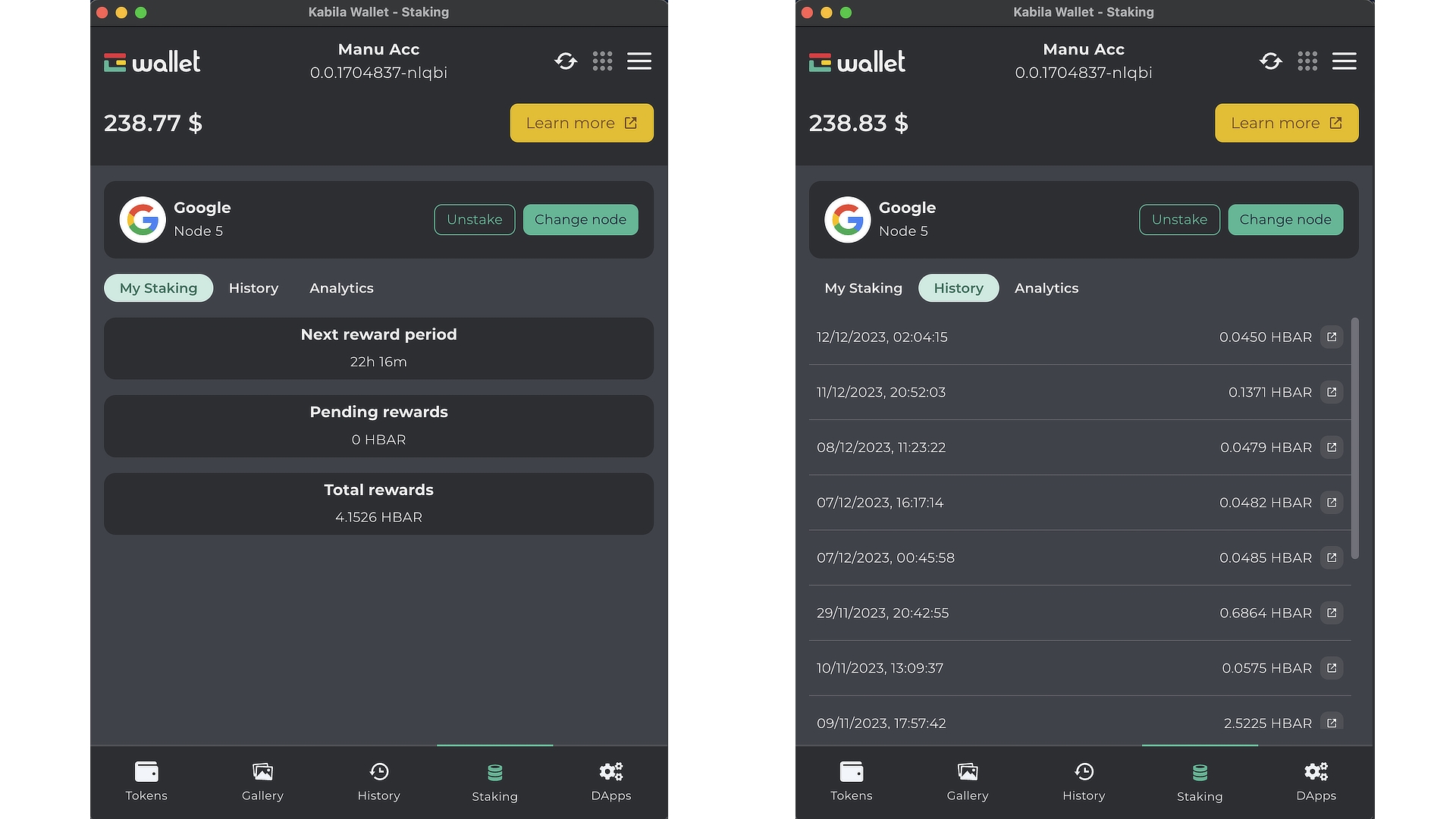 Para reclamar tus recompensas en tokens $HBAR, debes esperar al menos 24 horas después de hacer staking de tus tokens. Una vez que hayan pasado 24 horas, tienes tres opciones para recoger tus recompensas: