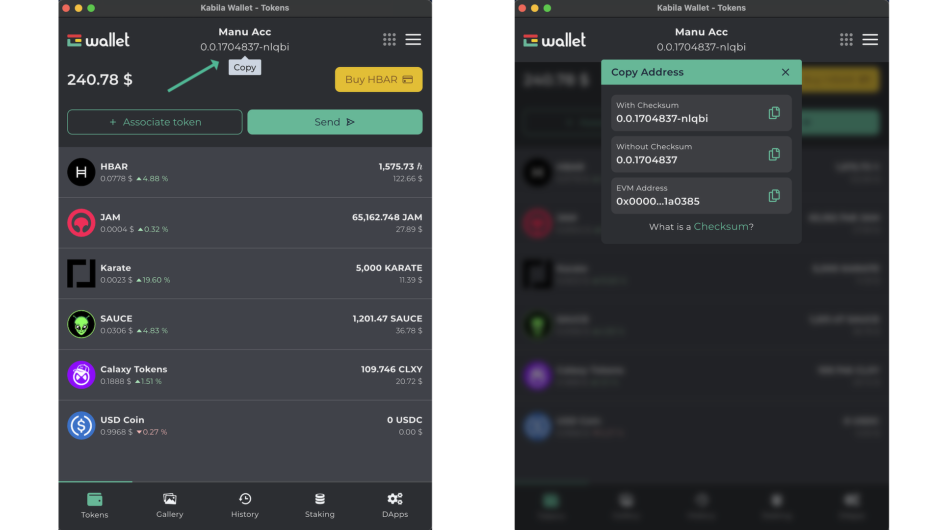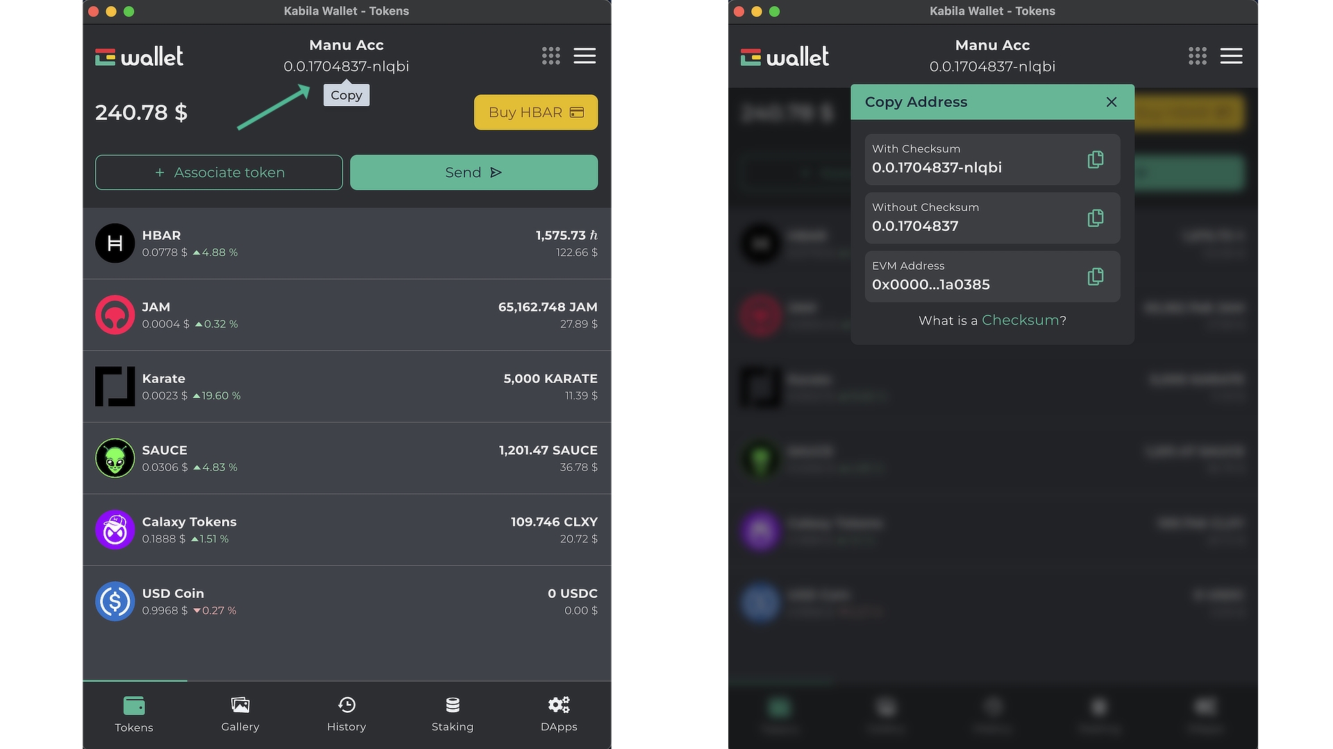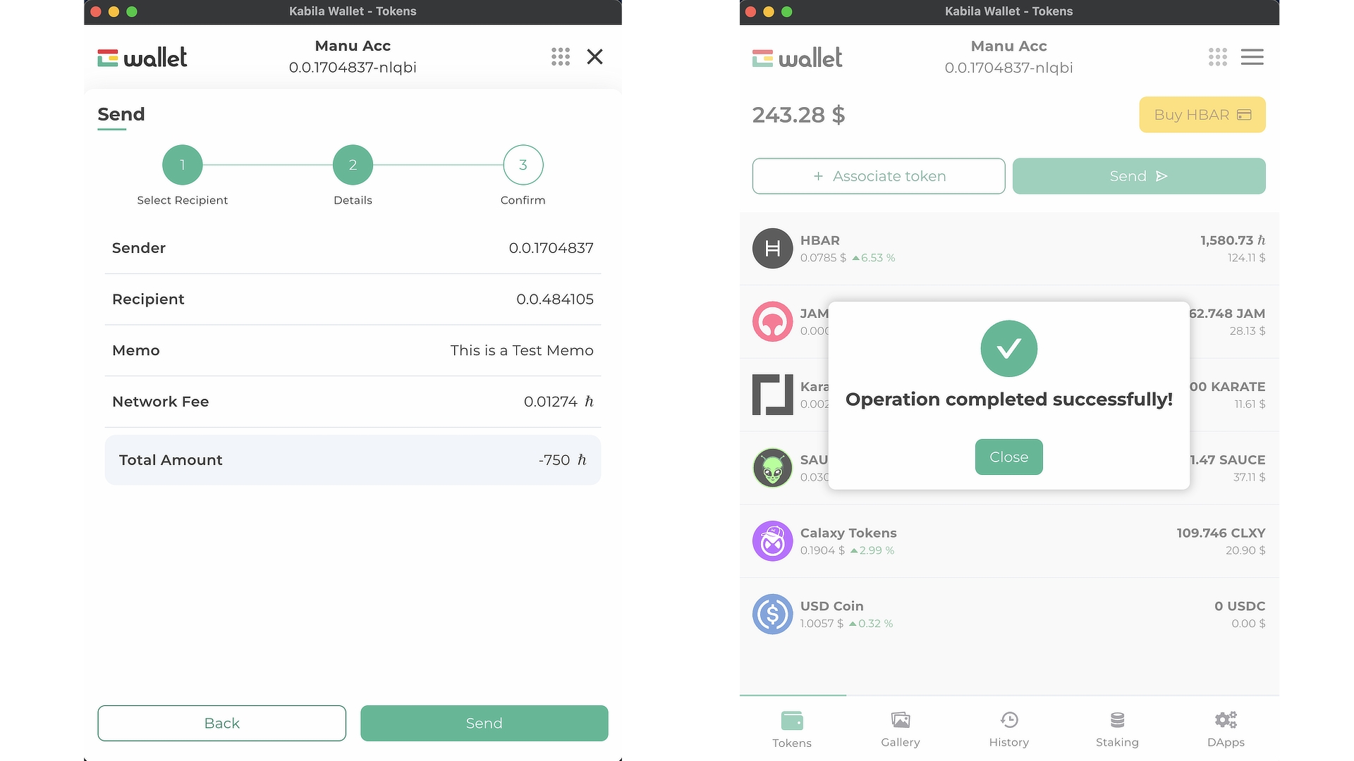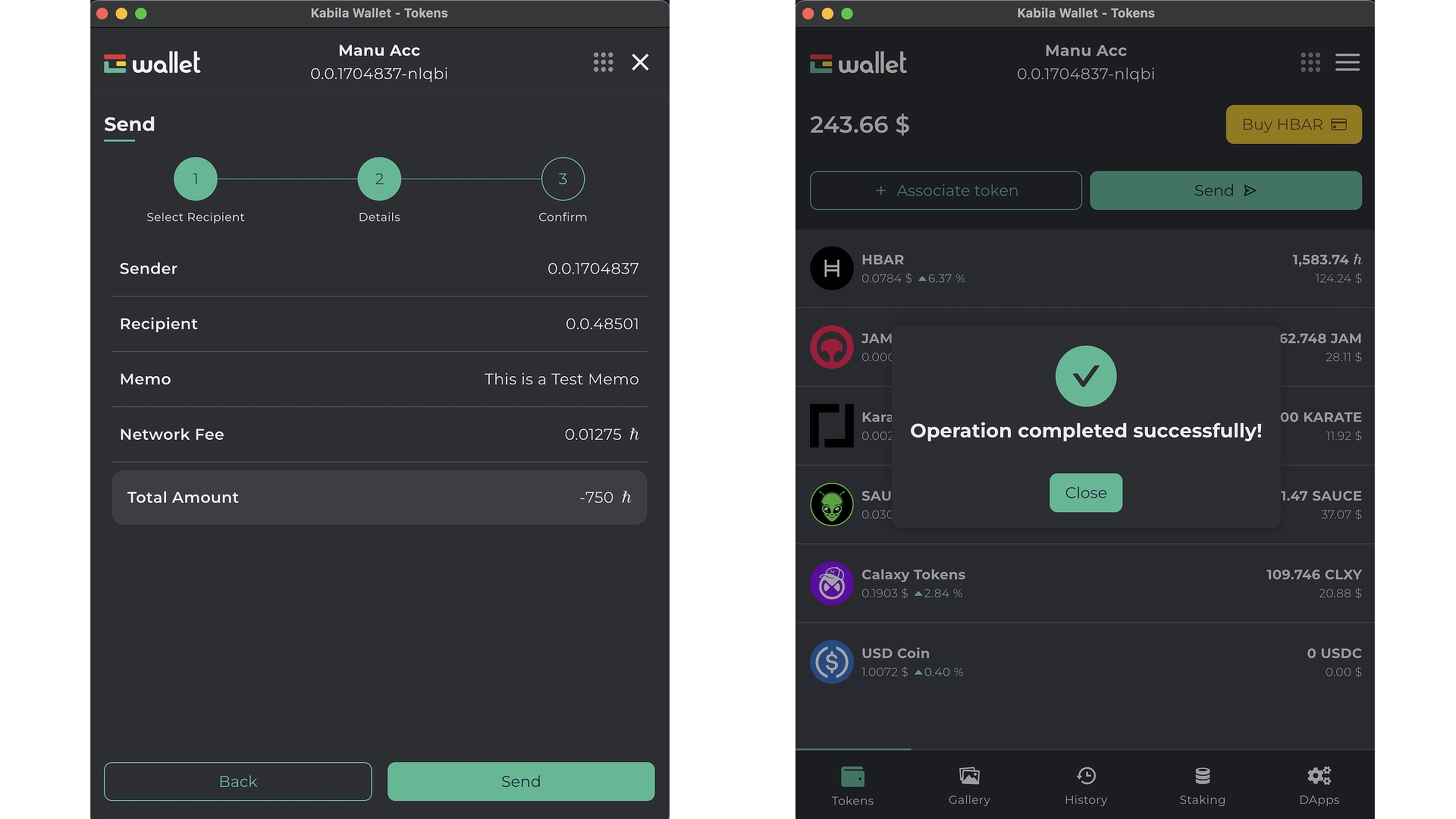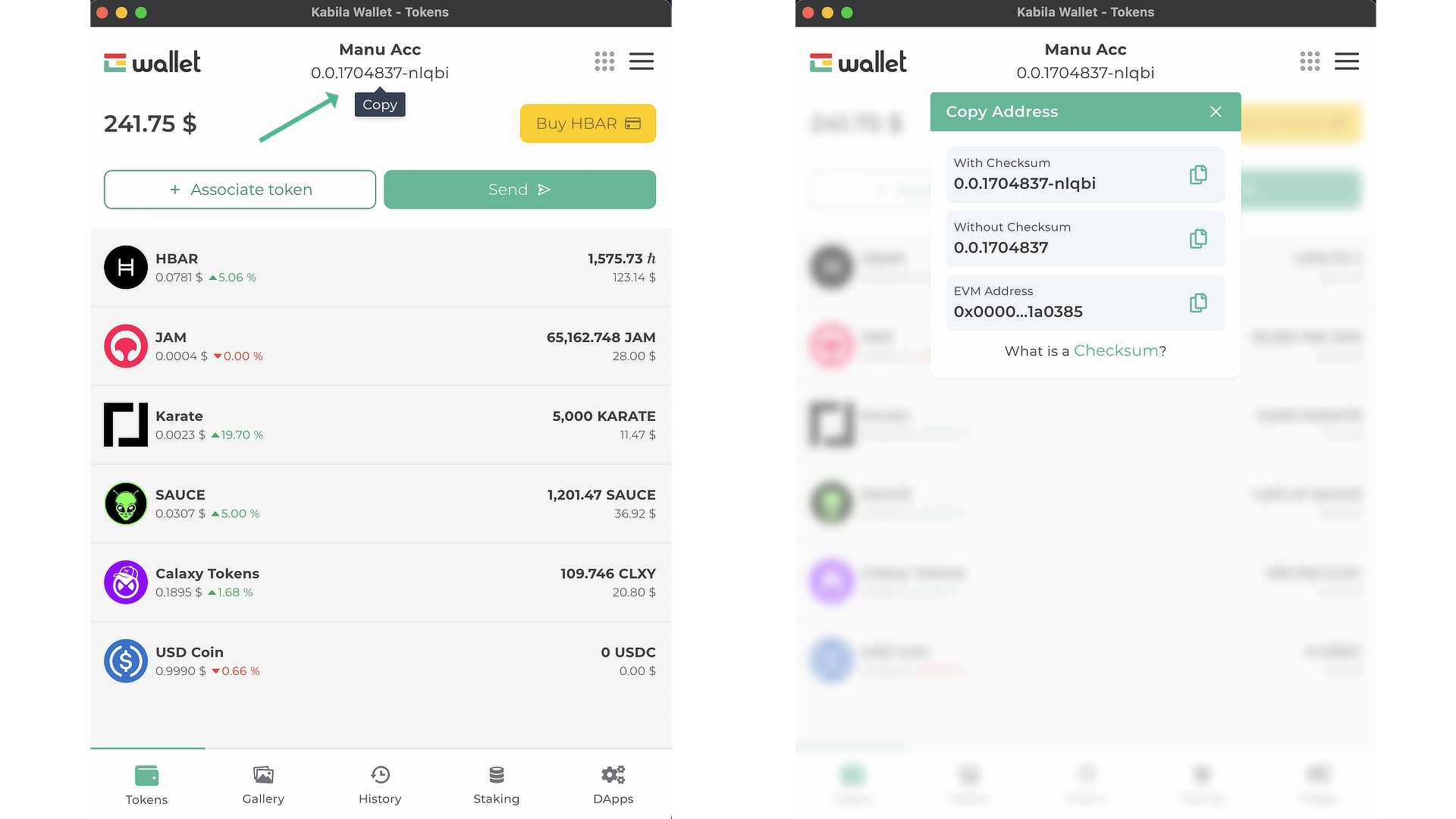 Sigue las instrucciones a continuación para enviar y recibir tokens con tu Kabila Wallet.